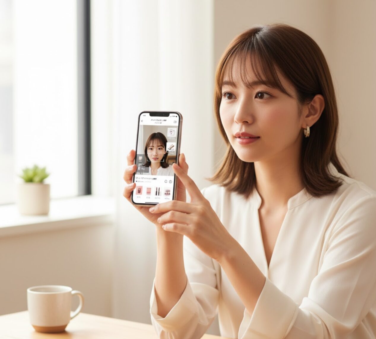 → 「3. アプリ(AIメイクアドバイザー)」が最適です。パーソナルカラーと顔比率を即時に診断し、「つけ方」までアドバイスしてくれます。 - B. 自宅から「無料」で「じっくり」BAに相談したい方