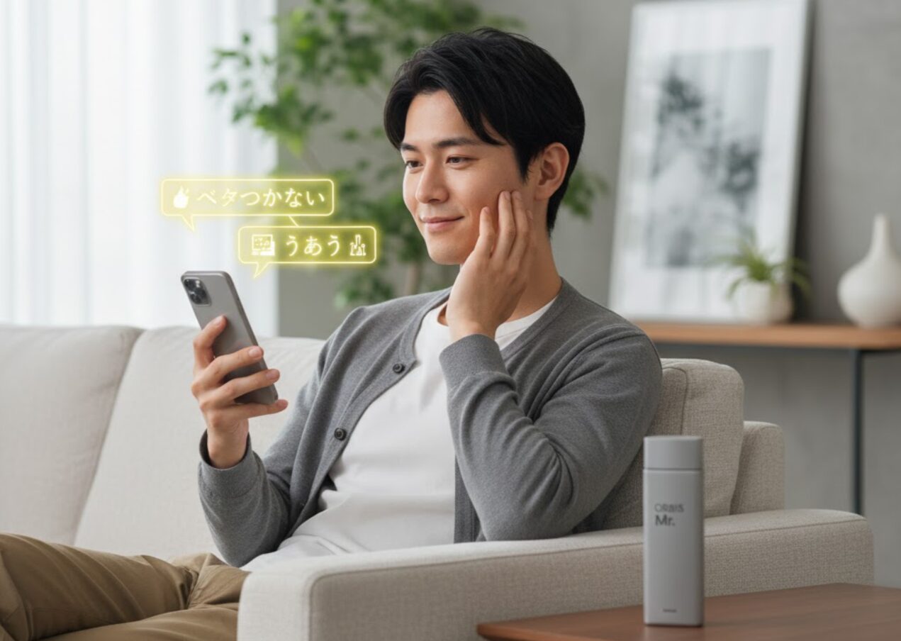 特に、男性特有の「インナードライ」状態、つまり「Tゾーンや額は皮脂でベタつくのに、頬や口周りは乾燥してカサつく」という複雑な肌質に合っていると感じる方が多いようです。ヒゲ剃り後のデリケートな肌にも「刺激を感じにくかった」という意見もあり、日々のケアに取り入れやすい点が支持されています。一方で、少数ながら「真冬の乾燥が厳しい時期には、クリームを足しても保湿力が物足りない」「毎日継続してライン使いするには価格が少し高い」といったコストパフォーマンスや保湿力に関する意見も見られます。ご自身の肌質や、スキンケアに求める優先順位(手軽さ、保湿力、コストなど)によって、感じ方には個人差があると言えるでしょう。