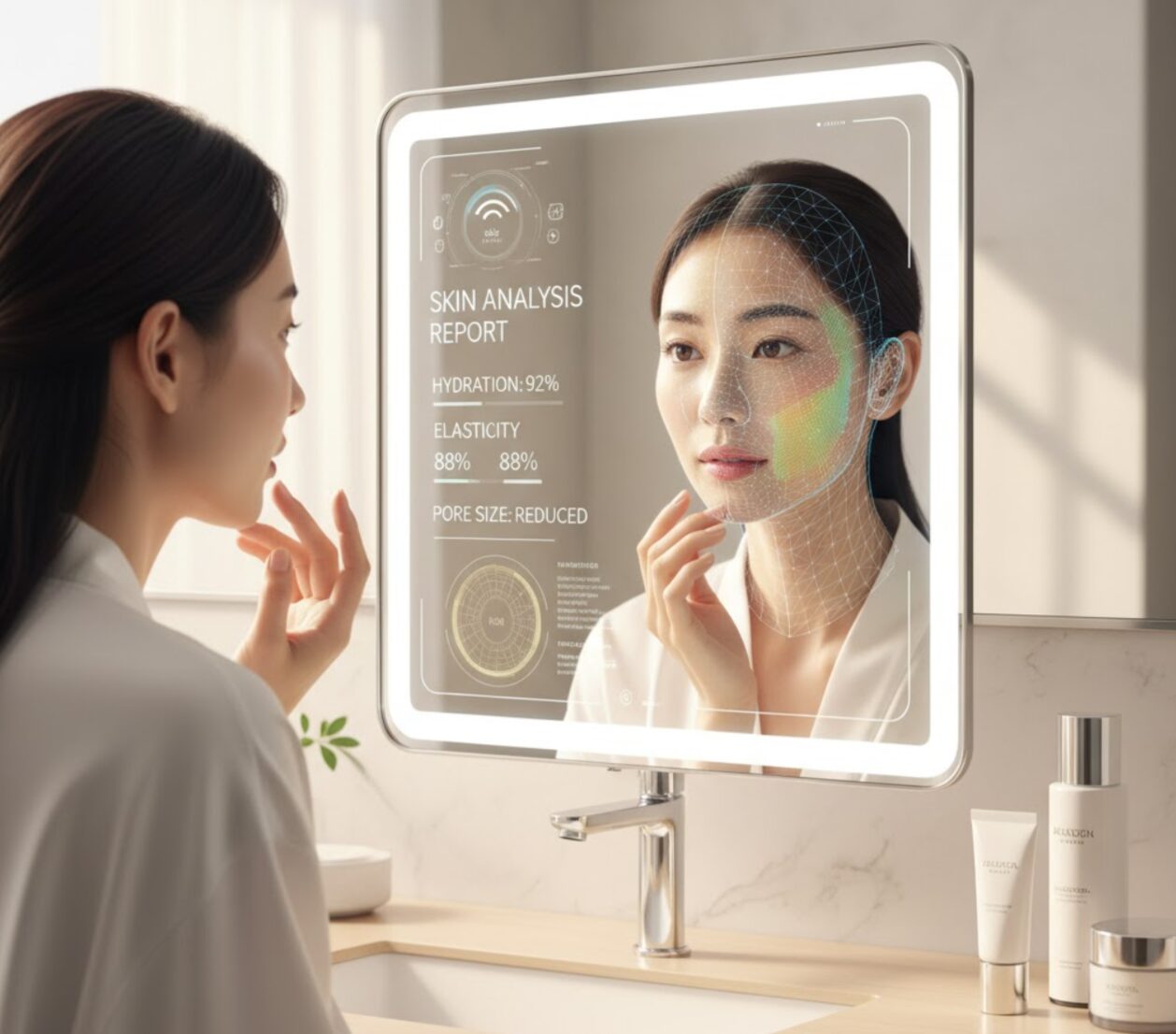 - 専用機器で測定: 次に、メイクを軽くオフ(またはメイクの上から測定できる機器も)して、専用の機器を肌に当てて測定します。痛みなどは全くなく、測定自体はすぐに終わるようです。(約5分)